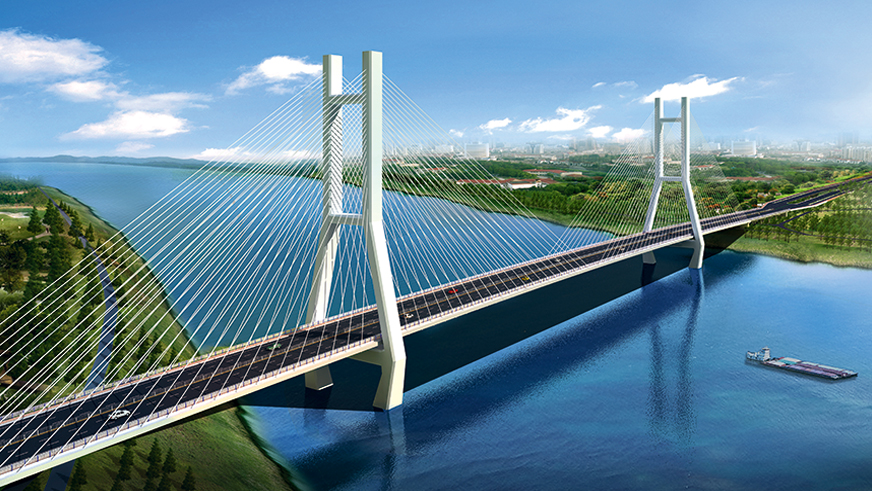 濟南黃河公路大橋采用雙塔雙索面等高鋼桁架斜拉橋結構形式,全長 1028 米,主跨 488 米,主塔高 168 米,主梁采用整體式鋼桁梁斷面,上下兩層,上層橋面為雙向八車道公路橋面,下層為雙線軌道橋面。濟南黃河公路大橋是貫徹落實黃河流域生態(tài)保護和高質量發(fā)展的國家戰(zhàn)略深入實施的重大項目,是加快濟南“擁河發(fā)展”、奮力開啟“黃河時代”的重要保障。